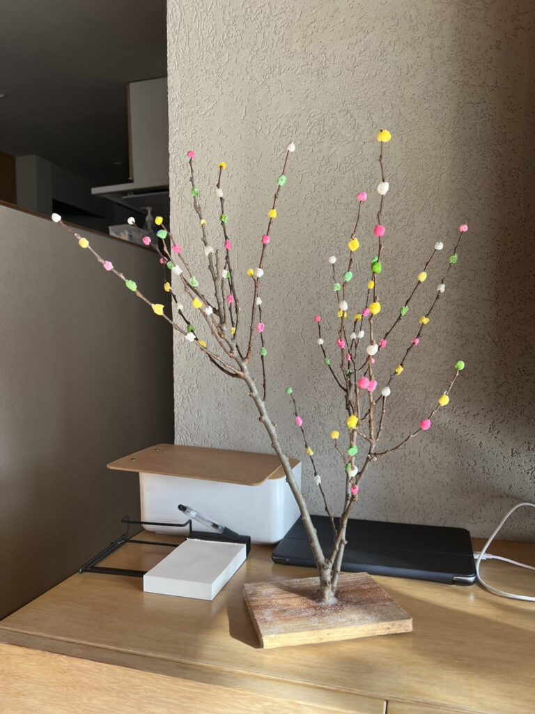 1月14日には、奄美に伝わる小正月飾り「ナリムチ(成り餅)」を宿に飾ります。